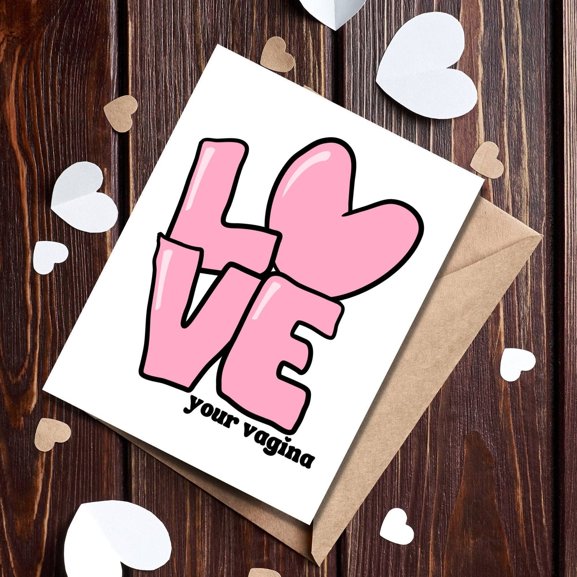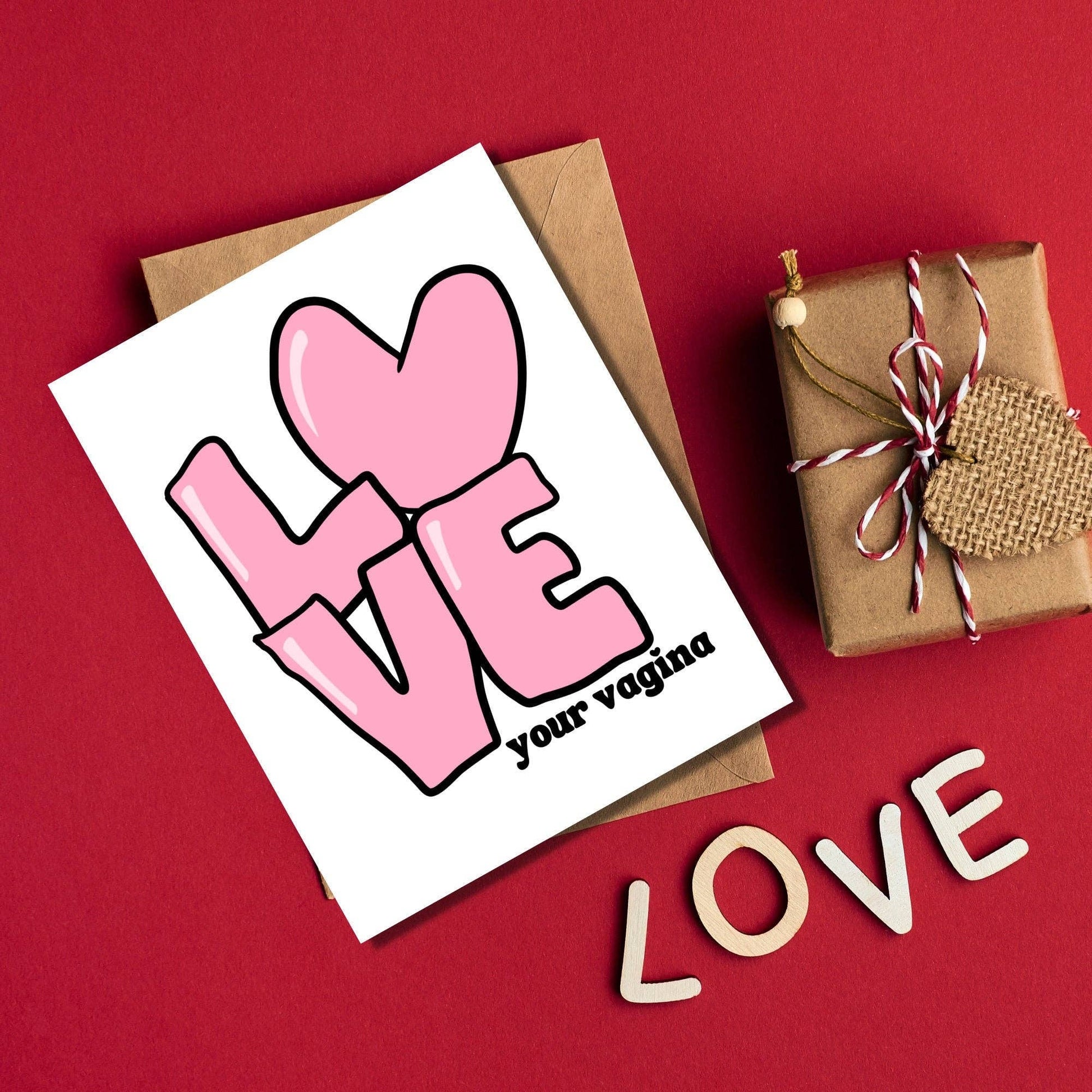 Front: love your vagina - Inside: blank - A2 card size (4.25in x 5.5in) - 100 lb Lynx cover uncoated cardstock - Includes kraft envelope