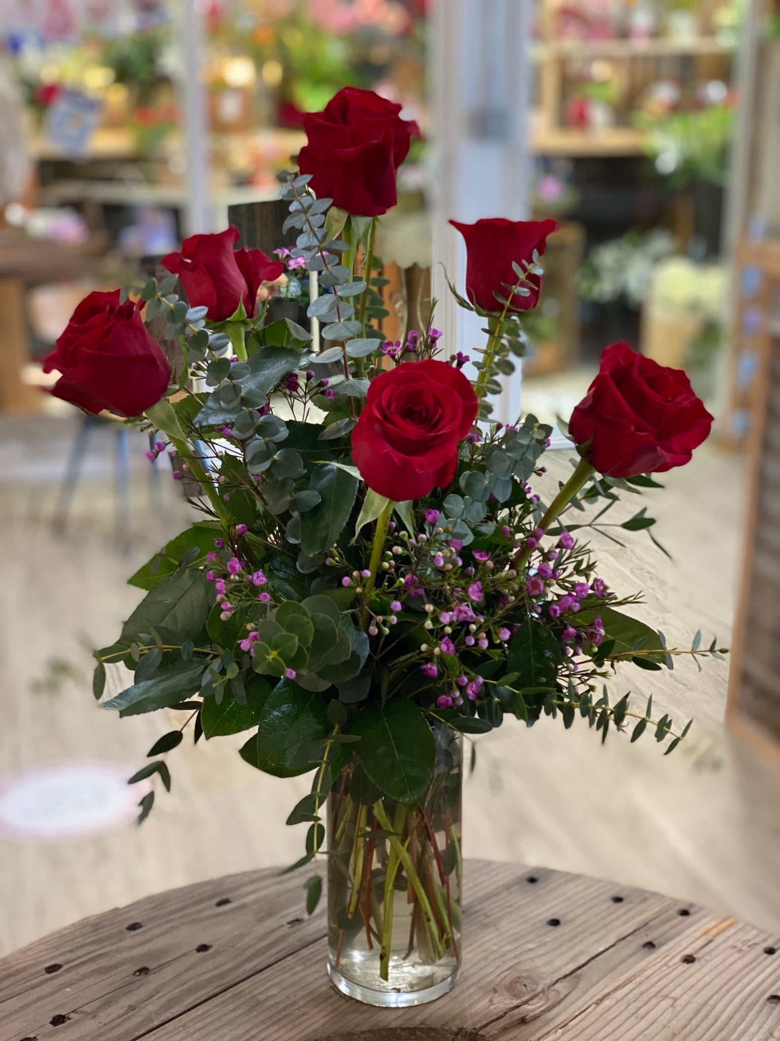 **Please note rose color availability varies as we hand select the varieties. Please call to ask what colors are available for the day you'd like to order. During peak holidays (Valentine's and Mother's Day), designers will choose most beautiful color and blooms in stock.**