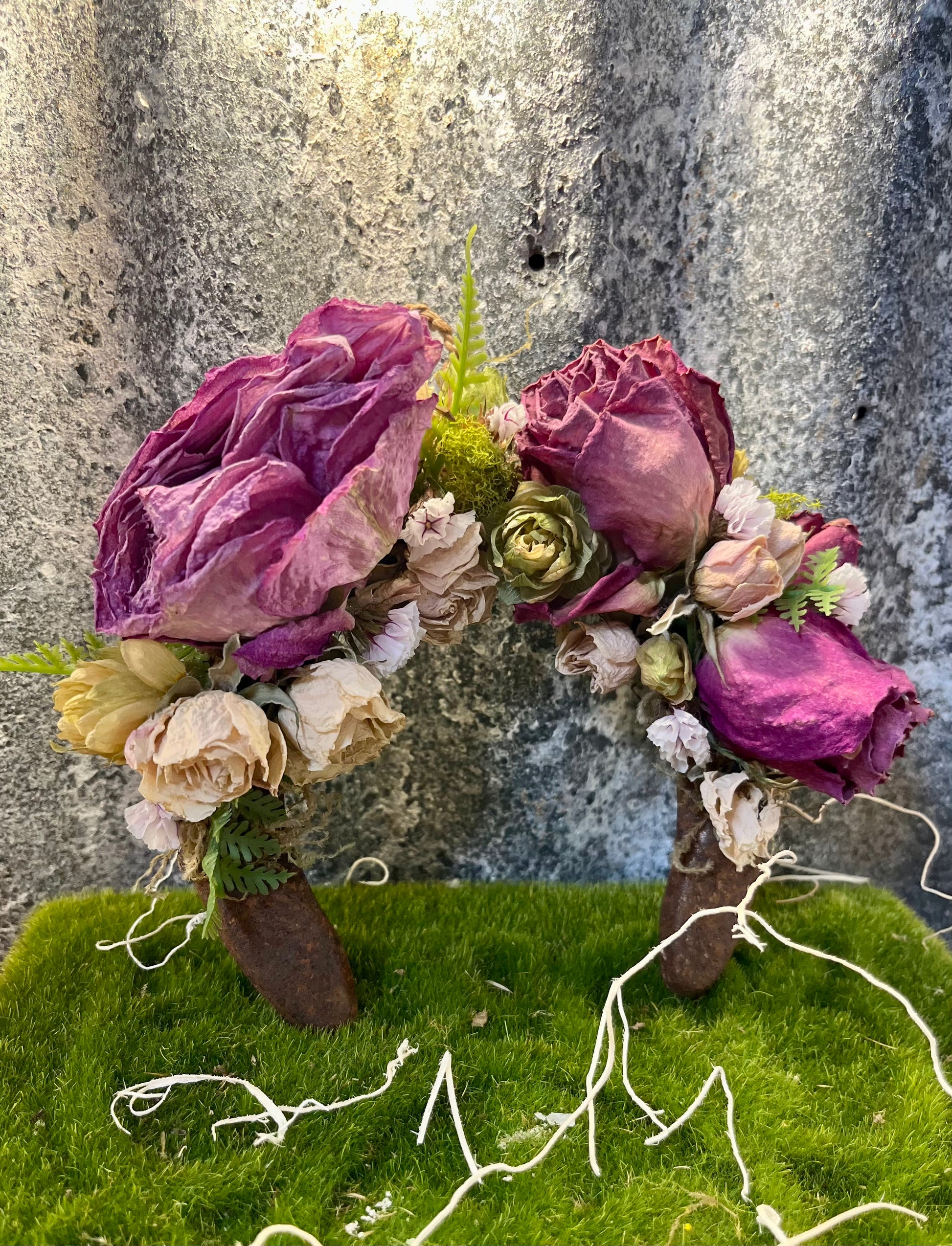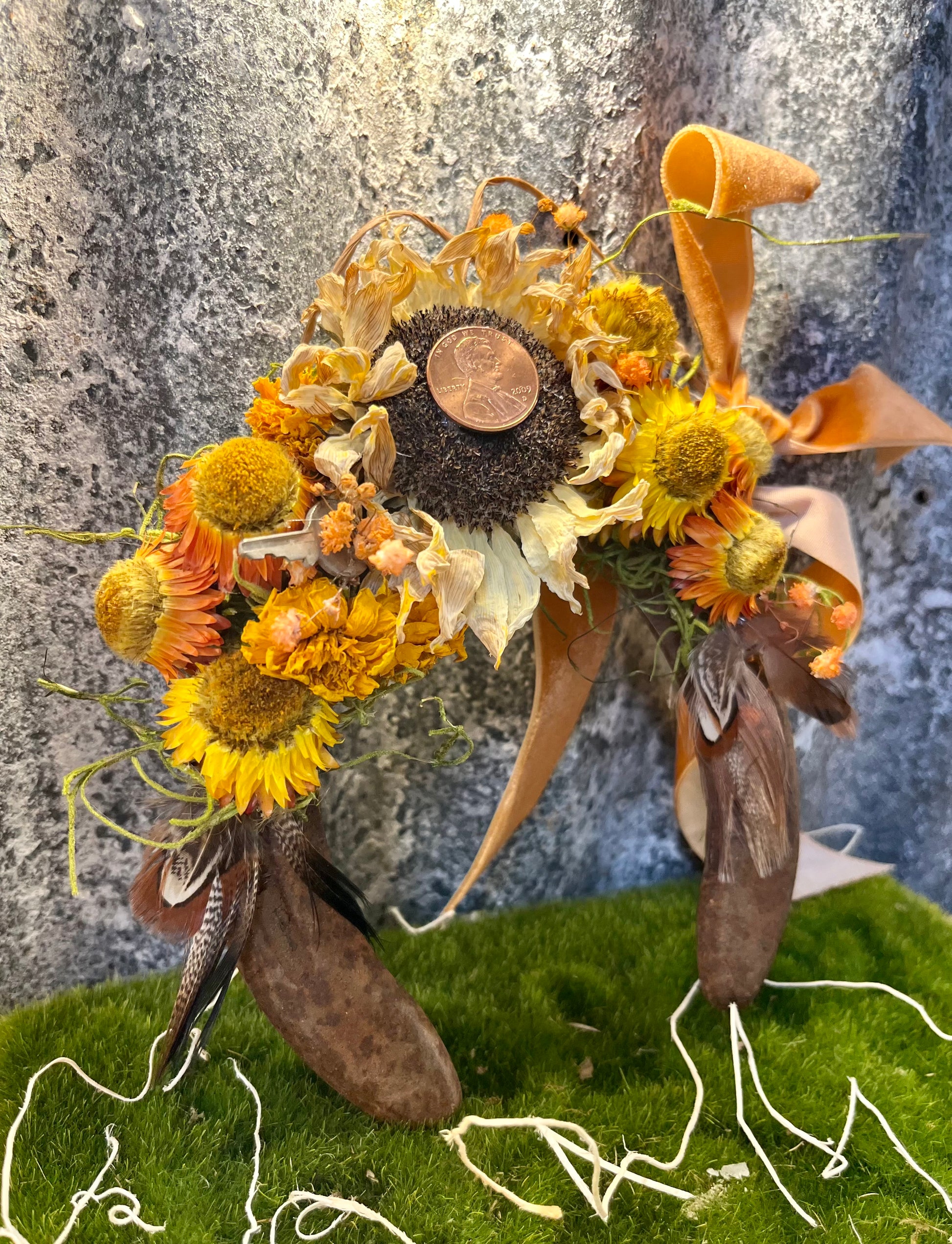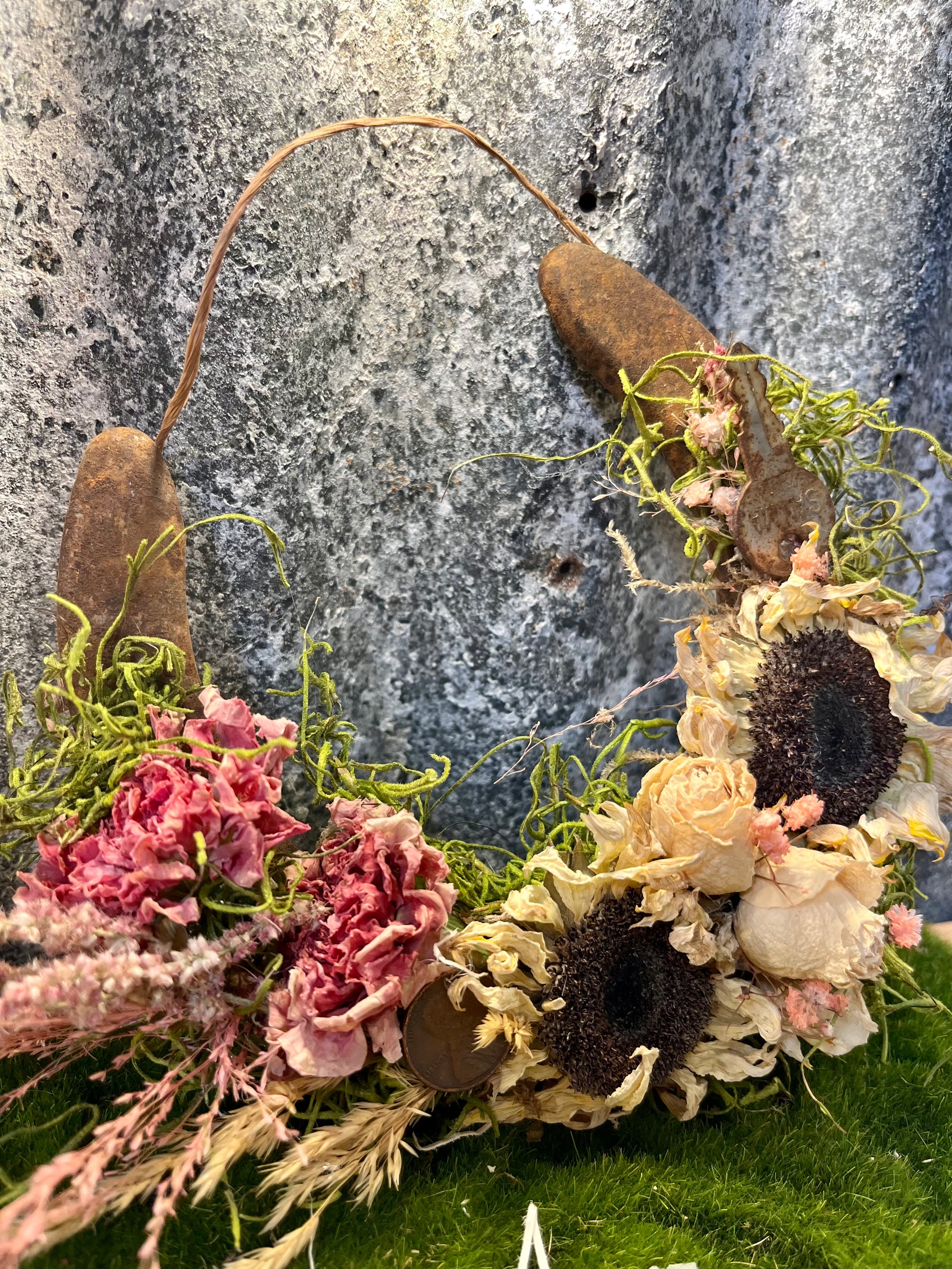 Decorative Lucky Horseshoe. Repurposed horseshoe adorned with dried flowers and other cute trinkets. Can be to placed anywhere around your home. Make's a perfect, one-of-a-kind gift!