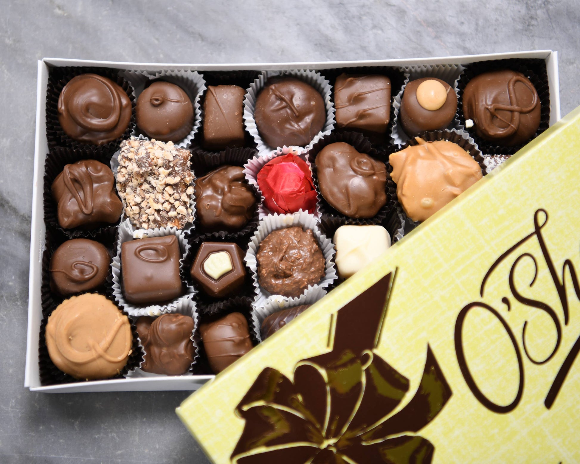 This is a full 1LB assortment of O'Shea's Candy Sweet Shop most popular items. Each box contains a variety of items including Cordial Cherries, Peanut Butter Cups, Clusters, Marshmallow, Homemade Creams, Roasted Nuts. This is by far our most popular box given the wide variety in each box. This is an original classic assortment box!