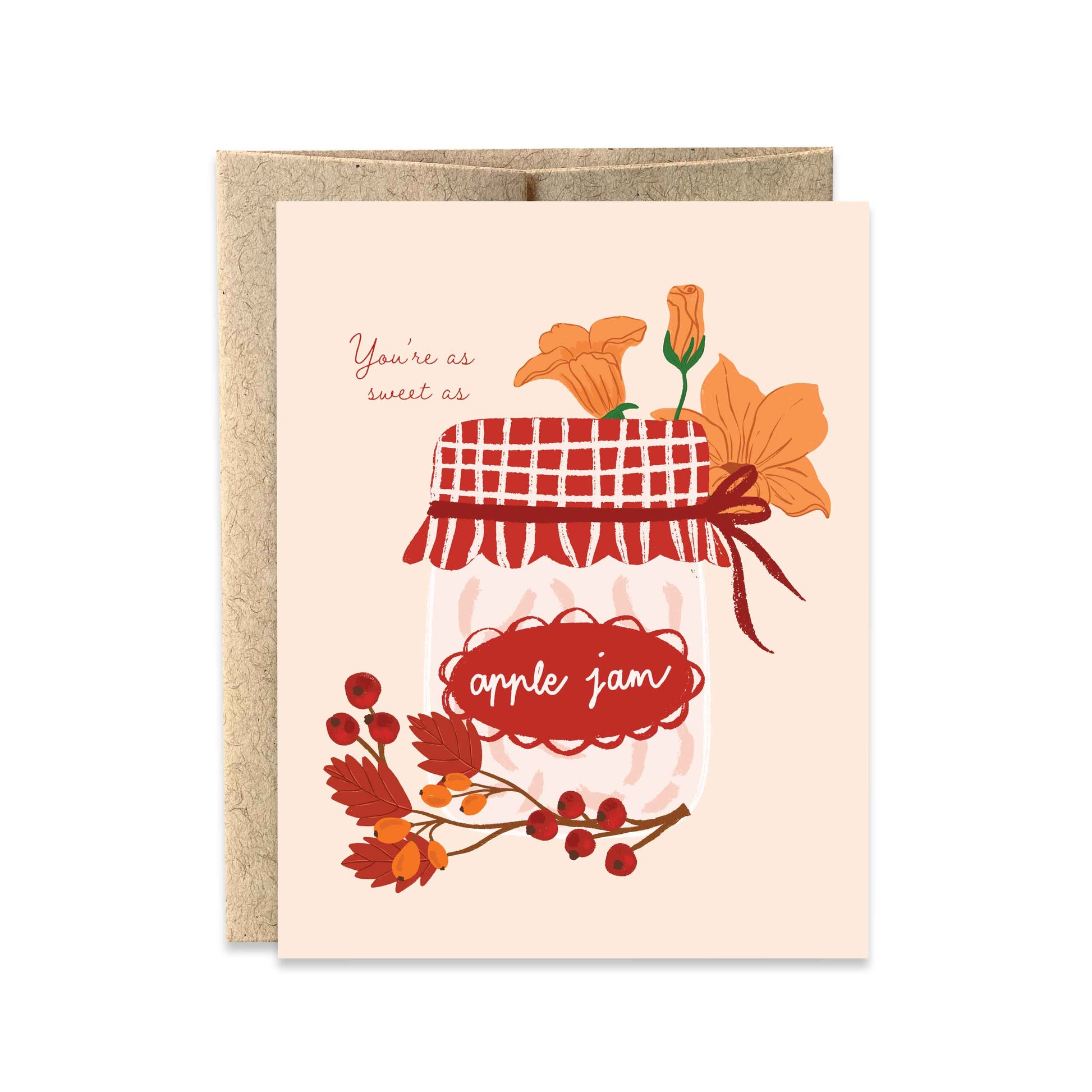Reads "You're as sweet as apple jam". Blank on the inside.
