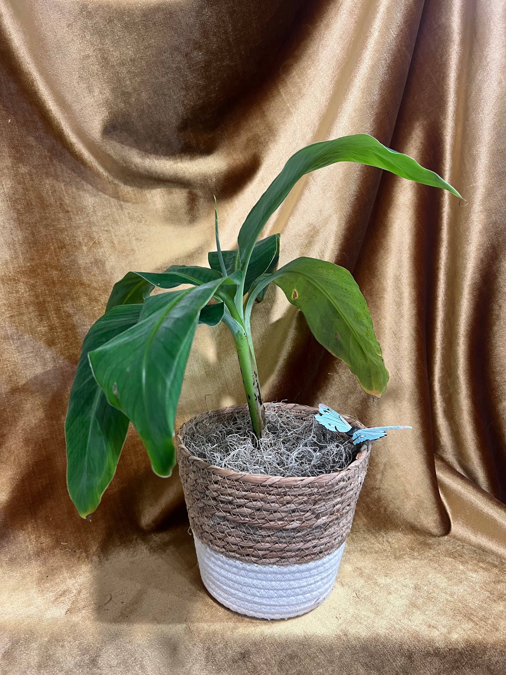 A tropical Banana Plant with bold, oversized green leaves that bring a lush, jungle feel indoors. It thrives in bright, indirect light and adds vibrant energy to any space with its fast-growing, dramatic foliage.