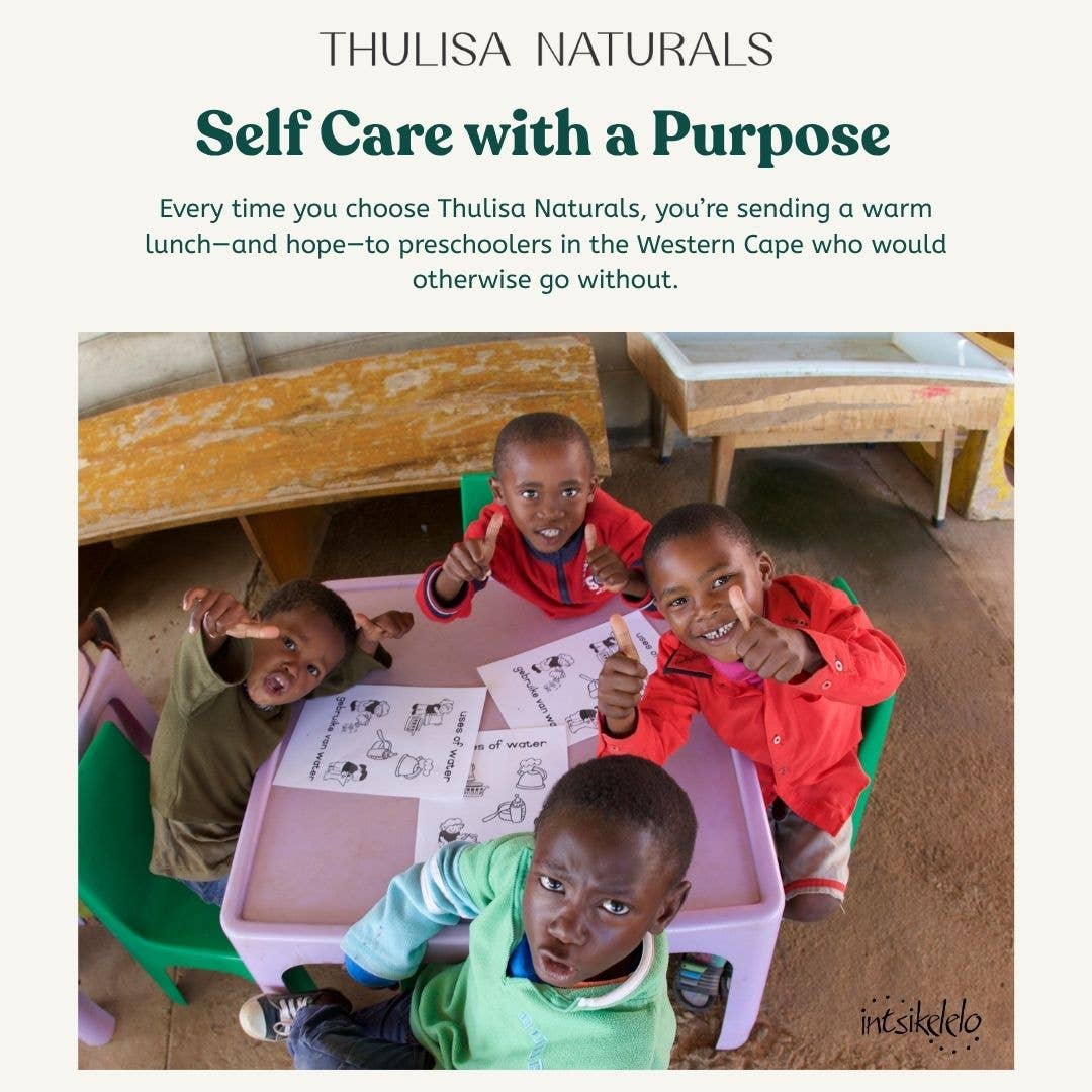 •We donate a portion of sales to provide free lunches to vulnerable preschoolers in South Africa